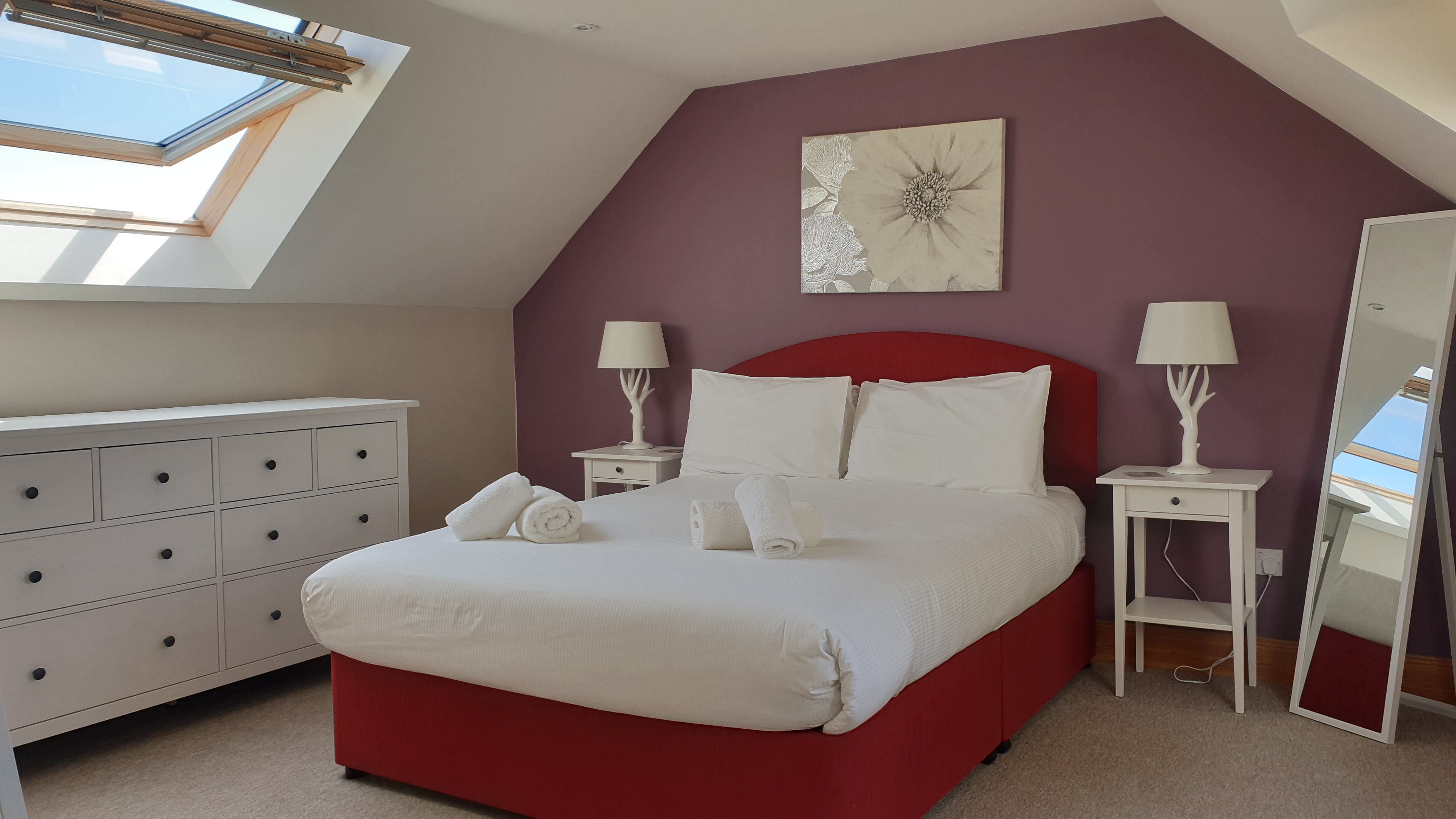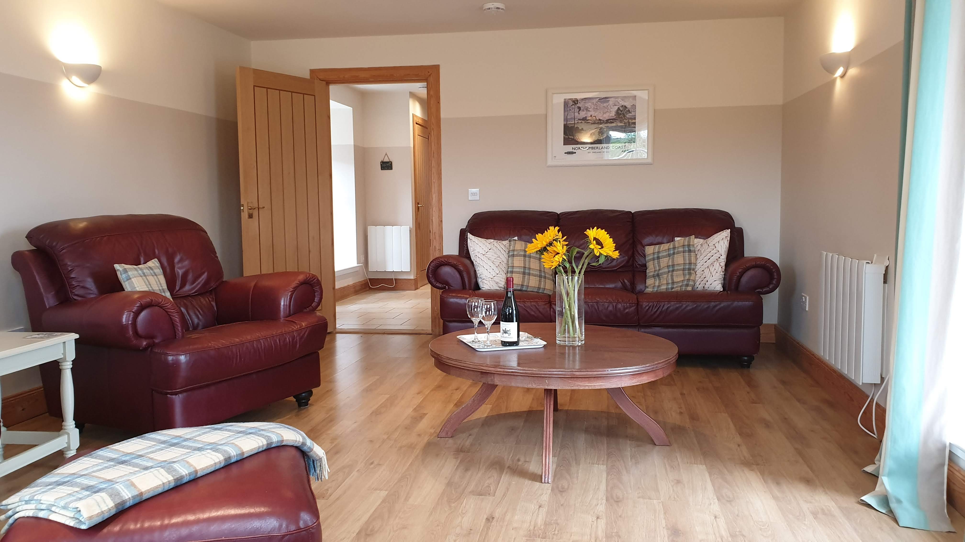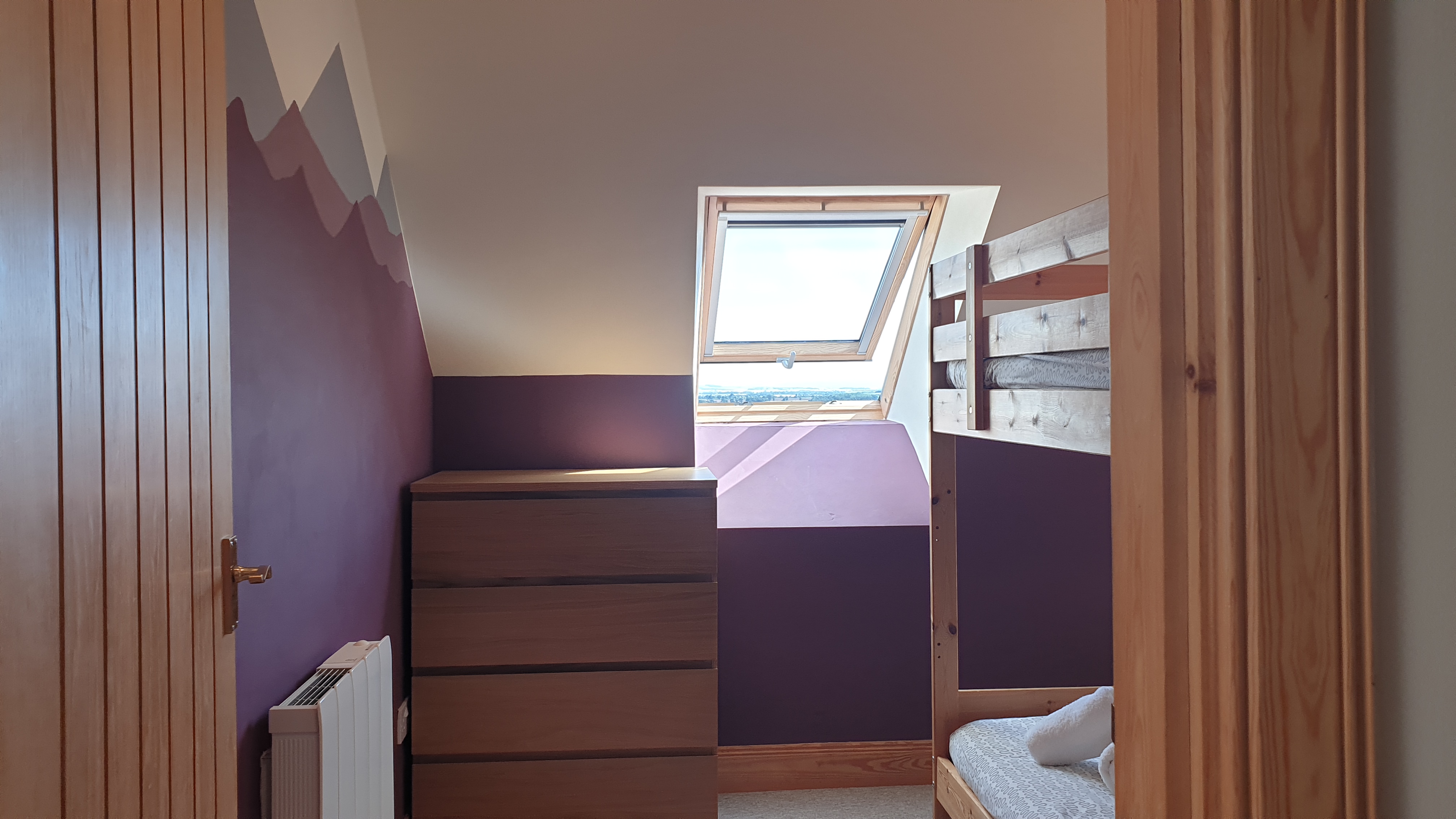 A beautifully converted barn which was once part of the Maines Farm, this accommodation provides comfortable living in a peaceful location. The living-room and dining-kitchen are both very spacious and light-filled, with access to the courtyard garden. Two double bedrooms, one en-suite, and a bunk bedroom have views over the surrounding fields- this loft house is ideal for families and couples alike.